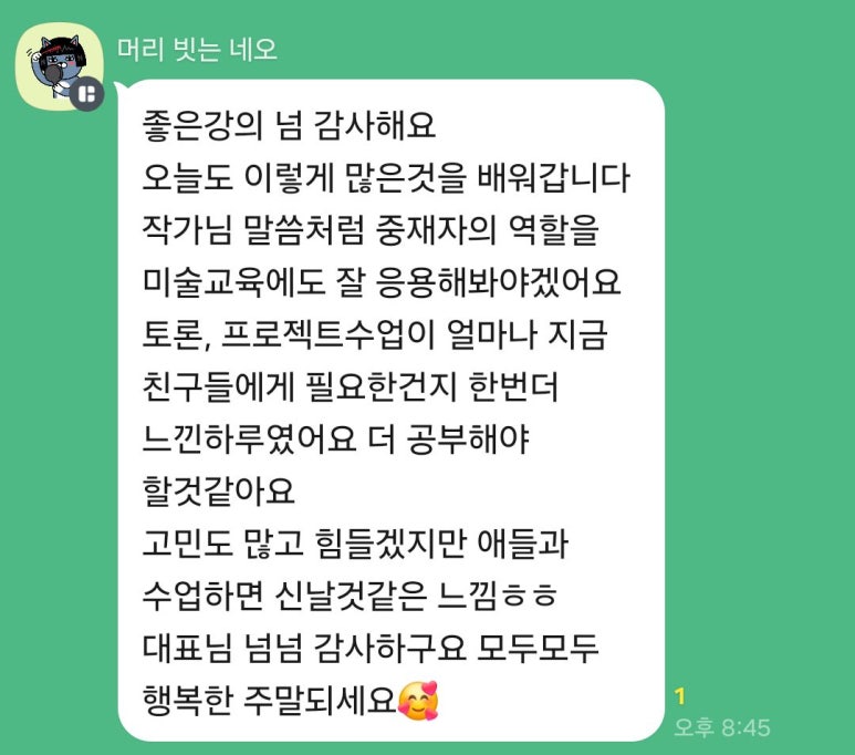 저의 교육관이 틀리지 않았다는 확신이 드는 워크샵이였습니다.